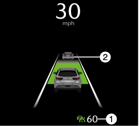 If a vehicle ahead is detected while traveling at a constant speed, the system switches to headway control. The vehicle ahead indication is displayed on the screen while in headway control.