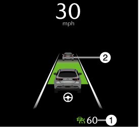 If a vehicle ahead is detected while traveling at a constant speed, the system switches to headway control. The vehicle ahead indication is displayed on the screen while in headway control.
