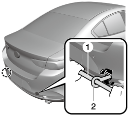 If the tiedown eyelet is not securely tightened, it may loosen or disengage from the bumper when tying the vehicle. Make sure that the tiedown eyelet is securely tightened to the bumper.