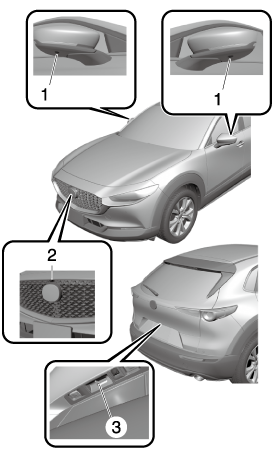 Consult an Authorized Mazda Dealer if you need to repair, replace, or paint parts near the cameras.