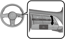 Depress the accelerator pedal until the vehicle speed reaches the desired speed, then press the RES switch up (SET+) or down (SET-).