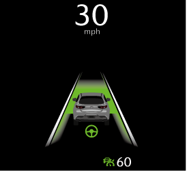 If a vehicle ahead is detected while traveling at a constant speed, the system switches to headway control. The vehicle ahead indication is displayed on the screen while in headway control.