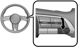 If the distance between vehicles control is disabled using the Mazda Connect, the system switches to the cruise control. At this time, the MRCC switch functions as the cruise control switch.