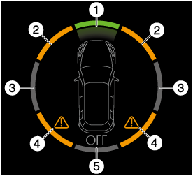 The i-ACTIVSENSE status symbol (Warning/risk avoidance support system) indicates the operating status of the following systems using the color or OFF indication.