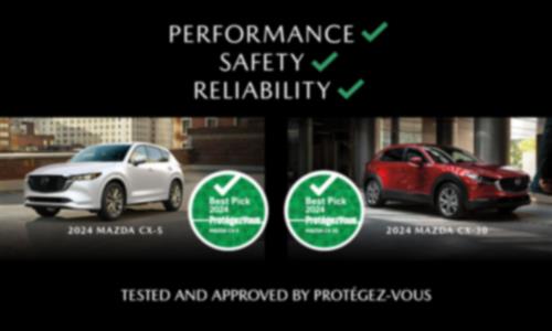 Mazda stood out once again with the CX-5 and CX-30, awarded “Best Pick” in their categories by Protégez-Vous, a trusted reference for Quebec consumers for over 40 years.
