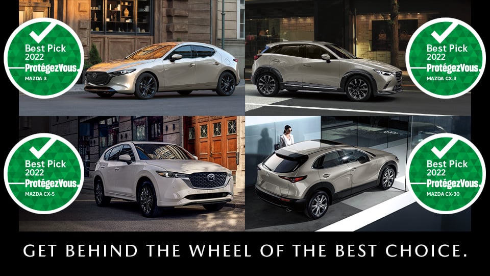 Once again this year, Mazda impressed the experts at Protégez-Vous who named the Mazda 3, CX-3, CX-30 and CX-5 “Best Picks” in their respective categories.
