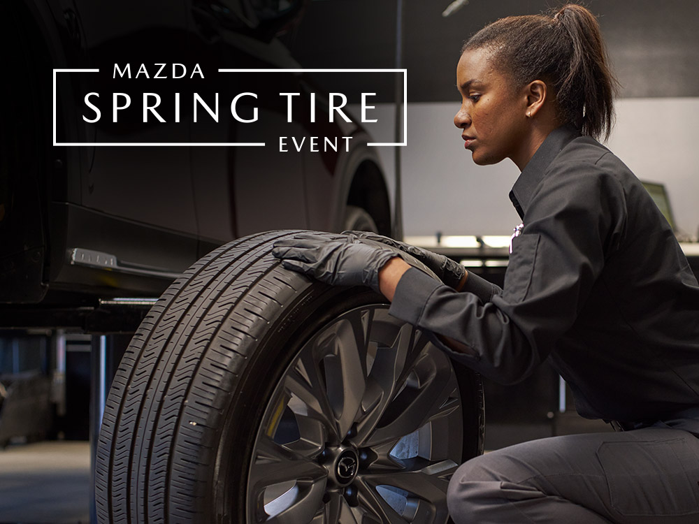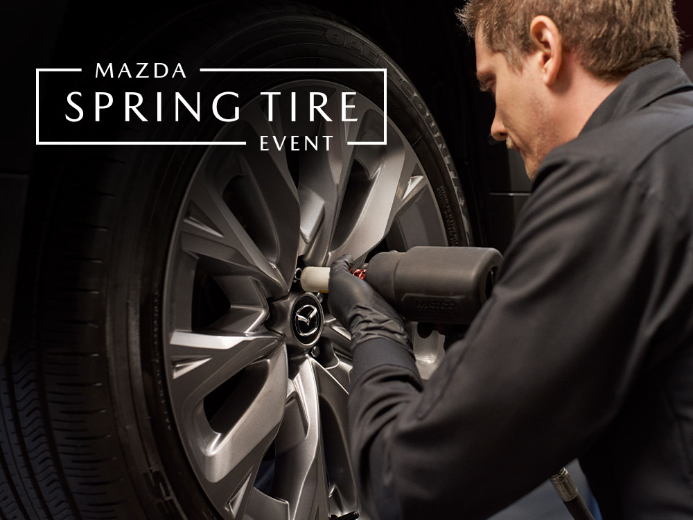 *Offer applicable to all current Mazda vehicles owners, at participating dealers only and in-store only. $50 discount is taken off the final purchase price after applicable taxes; additional savings of up to $100 is for informational purposes only and will vary according to the coupons and rebates available from, and subject to final review and approval by, the applicable tire manufacturer; the additional savings is subject to change without notice and not within Mazda’s control; for rebate instructions, terms and conditions, please see the tire manufacturer’s rebate form. Conditions, restrictions and expiration apply. See dealer and tire manufacturer’s claim form for details. $50 offer expires December 31, 2025, or while supplies last; the expiry of the additional savings of up to $100 is determined by the applicable tire manufacturer. Offer is subject to inventory of eligible tires available at each participating dealer; availability will vary based on each individual dealer’s available inventory. Eligible tires must be installed at participating dealer location. Offer has no cash value, cannot be combined with other offers, is not transferable and may be changed or cancelled without notice. Conditions apply, see your dealer for complete details.