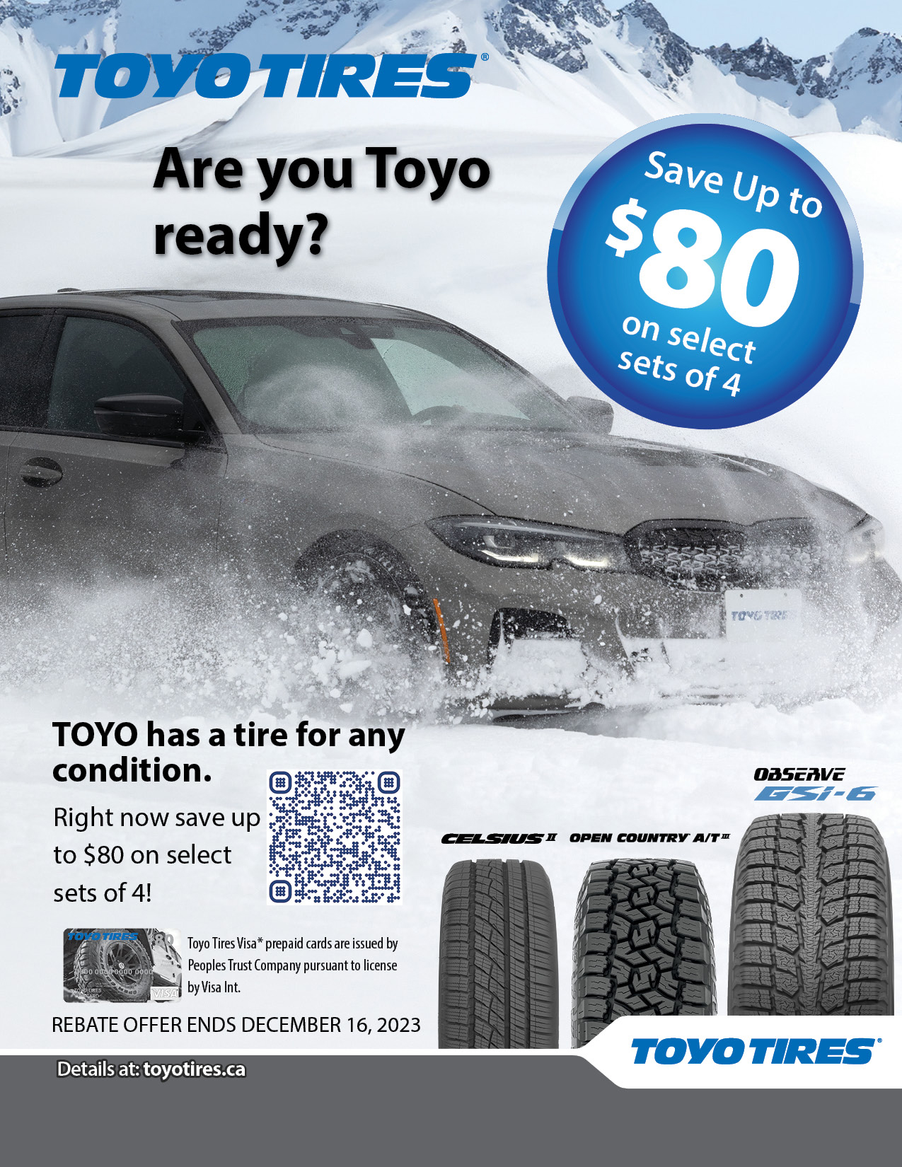 Toyo TiresBuy a set of Toyo tires and receive a rebate of up to $30* |