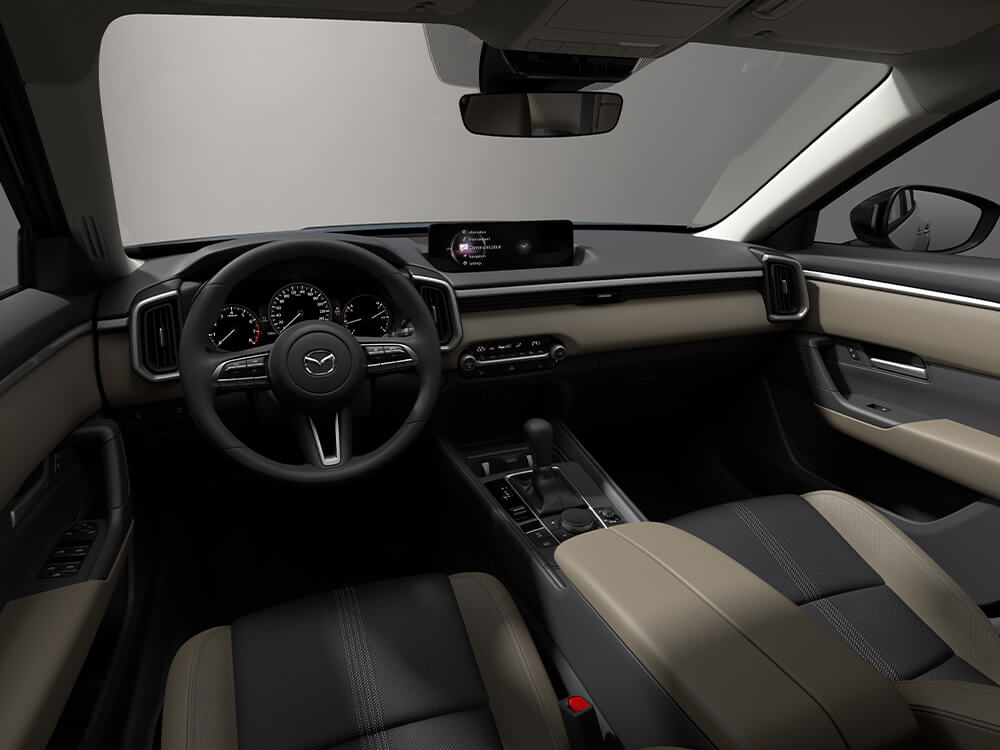 Small cameras embedded in strategic positions around your vehicle assist your awareness of potential hazards from every direction.6 This includes unobstructed sight into areas directly surrounding the CX-50 showing the vehicle as transparent. Check your surroundings with ease via the 10.25-inch dashboard-mounted Mazda Connect screen.
