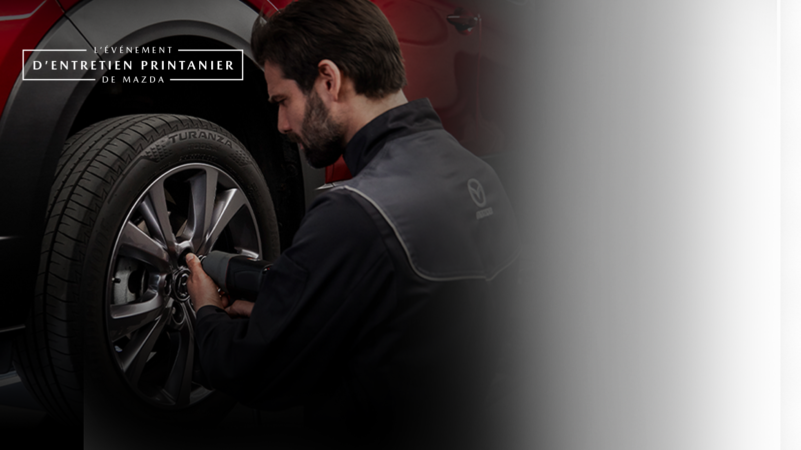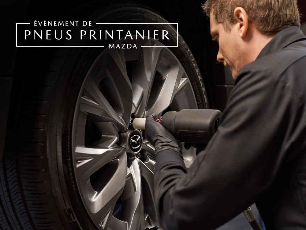 *Offre applicable à tous les propriétaires de véhicules Mazda actuels, chez les concessionnaires participants et en magasin seulement. Le rabais de 50 $ est appliqué au prix de vente final après les taxes applicables. Les rabais supplémentaires allant jusqu’à 100 $ sont à titre d’information seulement. Ils varient selon les bons et rabais offerts par le fabricant de pneus concerné et sont sous réserve de l’examen final et de l’approbation de ce dernier. Les rabais supplémentaires peuvent être modifiés sans préavis et ne sont pas sous le contrôle de Mazda. Pour obtenir les instructions et les conditions générales liées à ces rabais, veuillez consulter le formulaire de remise du fabricant de pneus. Des conditions, des restrictions et une date d’expiration s’appliquent. Consultez le concessionnaire et le formulaire de réclamation du fabricant de pneus pour obtenir des détails. L’offre de 50 $ expire le 31 décembre 2025. La date d’expiration des économies supplémentaires allant jusqu’à 100 $ est décidée par le fabricant de pneus. L’offre est assujettie aux stocks de pneus admissibles disponibles chez chaque concessionnaire participant; la disponibilité variera en fonction des stocks disponibles de chaque concessionnaire. Les pneus admissibles doivent être installés chez le concessionnaire participant. L’offre n’a aucune valeur monétaire, ne peut être combinée à d’autres offres, n’est pas transférable et peut être modifiée ou annulée sans préavis. Des conditions s’appliquent, communiquez avec votre concessionnaire pour obtenir tous les détails.