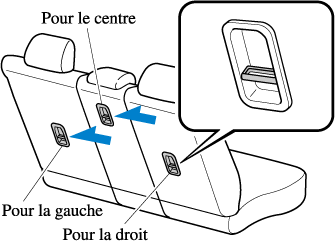 Certains systèmes de dispositif de sécurité pour enfants sont équipés de sangles d'ancrage et pour être efficaces ils doivent donc être installés sur des sièges qui peuvent accommoder les ancrages. Dans ce véhicule Mazda, des systèmes de dispositif de sécurité pour enfants équipés de sangles d'ancrage ne peuvent être installés qu'aux trois positions du siège arrière.