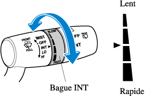 Mettre le levier sur la position intermittente et tourner la bague pour sélectionner la durée de l'intervalle.