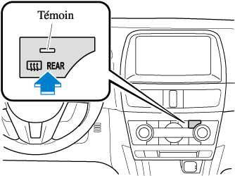 Appuyer sur l'interrupteur pour allumer le désembueur de lunette arrière. Le désembueur de lunette arrière fonctionne pendant 15 minutes environ, puis s'éteint automatiquement.