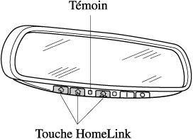 Le système HomeLink remplace jusqu'à 3 télécommandes en un seul composant intégré an rétroviseur à anti-éblouissement automatique. Il est possible de commander des portes de garage, des barrières et autres dispositifs en appuyant sur les touches HomeLink sur le rétroviseur à anti-éblouissement automatique.