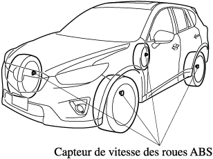 Le système de surveillance de pression des pneus (TPMS) surveille la pression d'air des quatre roues. Si la pression d'air d'un ou de plusieurs pneus est trop faible, le système avertit le conducteur en allumant le voyant du système de surveillance de pression des pneus sur le tableau de bord (l'alerte est également indiquée dans l'affichage sur le tableau de bord de type A*1) et en déclenchant un bip sonore. Le système surveille la pression des pneus de manière indirecte avec les données envoyées par les capteurs de vitesses des roues ABS.