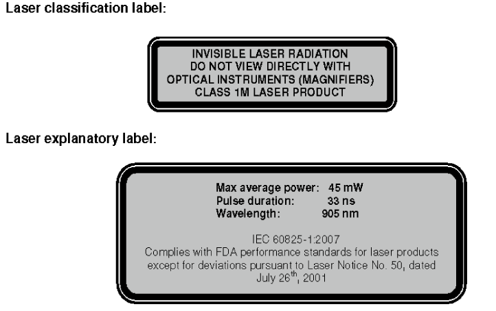Ne pas regarder directement à l'intérieur du capteur avec des instruments optiques capables d'agrandir, comme des loupes, un microscope ou des lentilles d'objectif à une distance de 100 mm (3,94 po.) du capteur.