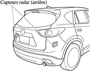 Pour les réparations ou le remplacement des capteurs radar (arrière), ou des réparations au pare-chocs, du travail de peinture et le remplacement à proximité des capteurs radar, consulter un concessionnaire agréé Mazda.