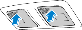 Lorsque l'interrupteur d'éclairage au pavillon est dans la position de portière ou la position désactivée, appuyer sur la lentille pour allumer les lampes de lecture avant, puis réappuyer sur la lentille pour l'éteindre.