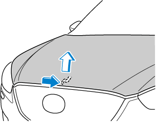 Glisser la main dans l'ouverture du capot, pousser le levier de la gâche vers la droite et soulever le capot.