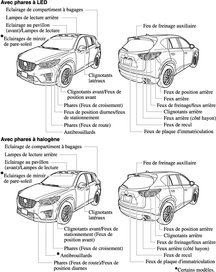 Pour remplacer l'ampoule, s'adresser à un concessionnaire agréé Mazda.