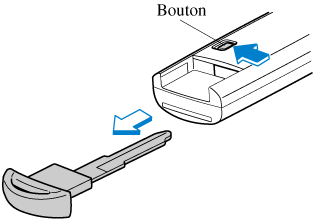 Pour utiliser la clé auxiliaire, la sortir de la télécommande tout en appuyant sur le bouton.