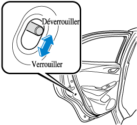 Si le verrou de sécurité est poussé en position verrouillée avant de fermer la portière, elle ne peut pas être ouverte de l'intérieur. Pour ouvrir la portière il faut tirer uniquement sur la poignée extérieure.
