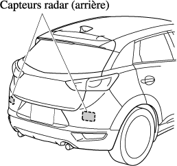Pour les réparations ou le remplacement des capteurs radar (arrière), ou des réparations au pare-chocs, du travail de peinture et le remplacement à proximité des capteurs radar, consulter un concessionnaire agréé Mazda.