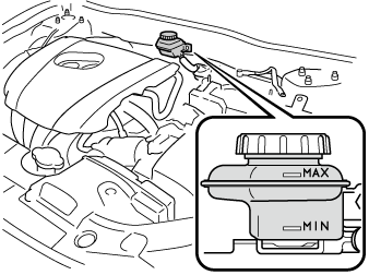 Vérifier périodiquement le niveau du liquide dans le réservoir. Le niveau doit être gardé entre les repères MAX et MIN.