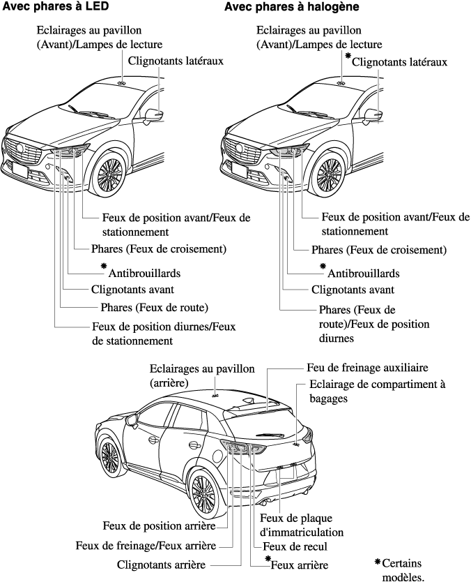 Pour remplacer l'ampoule, s'adresser à un concessionnaire agréé Mazda.