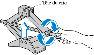 Tourner la vis du cric dans le sens indiqué sur la figure et ajuster la tête du cric pour soit proche de la position de levage.