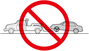 Une méthode appropriée de levage et de remorquage est nécessaire pour éviter d'endommager le véhicule. En particulier, lorsqu'on remorque un véhicules AWD, pour lequel toutes les roues sont connectées au mécanisme d'entraînement, il est absolument essentiel de transporter correctement le véhicule pour éviter d'endommager le système d'entraînement. Toutes les lois gouvernementales et locales doivent être respectées.