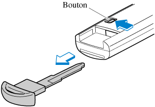 Pour utiliser la clé auxiliaire, la sortir de la télécommande tout en appuyant sur le bouton.