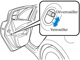 Si le verrou de sécurité est poussé en position verrouillée avant de fermer la portière, elle ne peut pas être ouverte de l'intérieur. Pour ouvrir la portière il faut tirer uniquement sur la poignée extérieure.