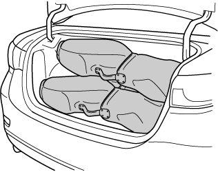 Placer chacun des trois premiers sacs de golf dans le compartiment à bagages avec la base de chaque sac orientée vers la gauche, puis installer le haut de chaque sac de façon à ce qu'il soit orienté vers la droite.