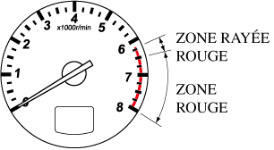 Ne pas pousser le régime moteur jusqu'à la ZONE ROUGE du compte-tours.