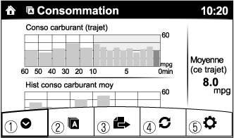 L'état de commande et la consommation de carburant et l'efficacité sont permutées et affichées en appuyant sur chaque icône dans l'écran.