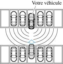 La zone de détection du capteur radar (arrière) est obstruée par un mur voisin ou un véhicule en stationnement. Faire marche arrière avec le véhicule jusqu'à une position où la zone de détection du capteur radar n'est plus obstruée.)