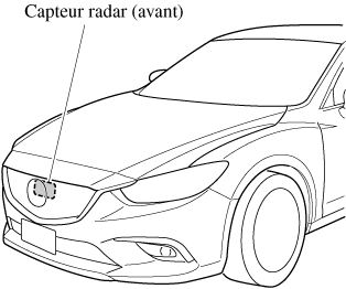 Si la partie frontale du véhicule a été endommagée lors d'un accident de circulation, la position du capteur radar (avant) peut s'être modifiée. Arrêter le système immédiatement et toujours faire inspecter le véhicule par un concessionnaire agréé Mazda.