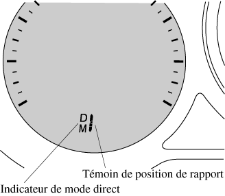Tandis qu'en mode direct, les indications D et M s'allument et la position de la vitesse utilisée est indiquée.