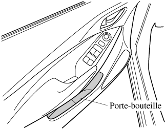 Ne pas utiliser les porte-bouteilles pour des contenants non fermés. Le liquide risque de se renverser lorsqu'une portière est ouverte ou fermée.