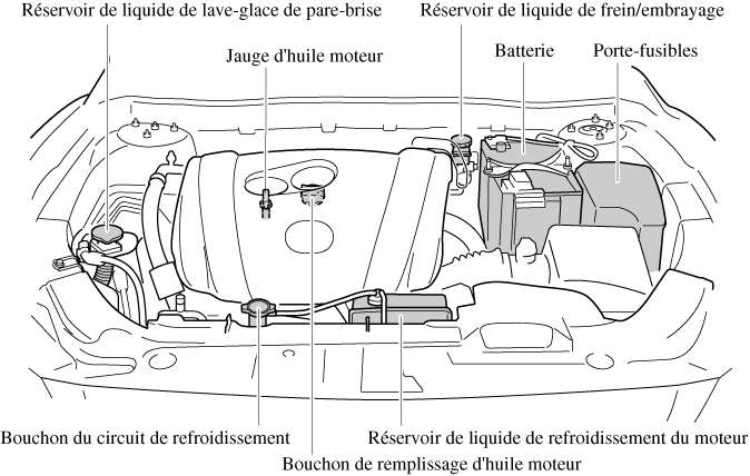 Vue générale du compartiment moteur