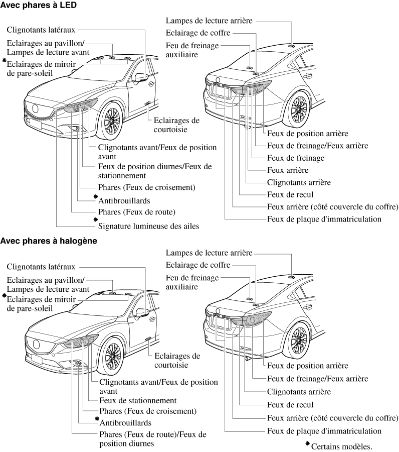 Pour remplacer l'ampoule, s'adresser à un concessionnaire agréé Mazda.