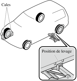 Il est dangereux de démarrer le moteur ou de secouer le véhicule, car cela pourrait détacher le véhicule du cric et entraîner un accident.