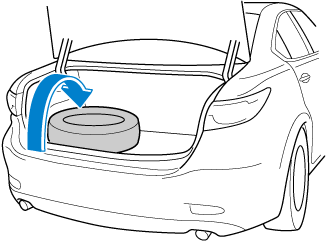Mettre le pneu à plat dans le coffre sur le côté gauche vers l'arrière.