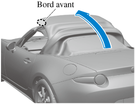 En se tenant debout à l'extérieur du véhicule, tenir le toit convertible le long de la bordure avant et le tirer vers l'avant du véhicule.