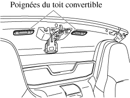 Pour élever le toit convertible depuis l'intérieur du véhicule, utiliser les poignées du toit convertible.