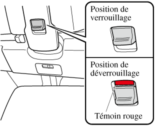 Si le témoin rouge s'allume sur le bouton de déblocage, le toit convertible n'est pas verrouillé. Après avoir verrouillé le toit convertible, s'assurer que le témoin rouge soit bien éteint.