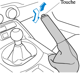 Appuyer sur la pédale de frein et tirer fermement le levier de frein de stationnement vers le haut de manière à immobiliser le véhicule.