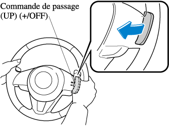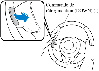 Pour rétrograder à un rapport inférieur avec les commandes de changement du volant, tirer la commande de rétrogradation (DOWN)