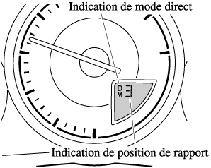 Tandis qu'en mode direct, les indications D et M s'allument et la position de la vitesse utilisée est indiquée.